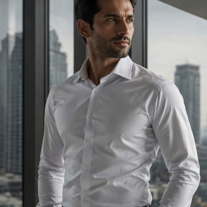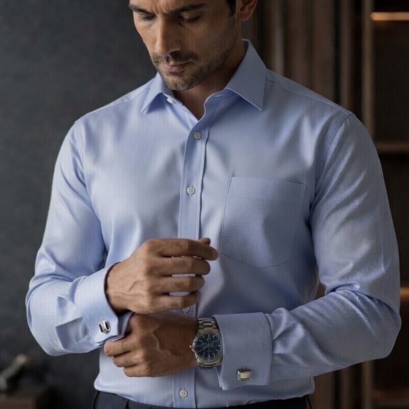 French cuff shirt with cufflinks — built for formal authority.