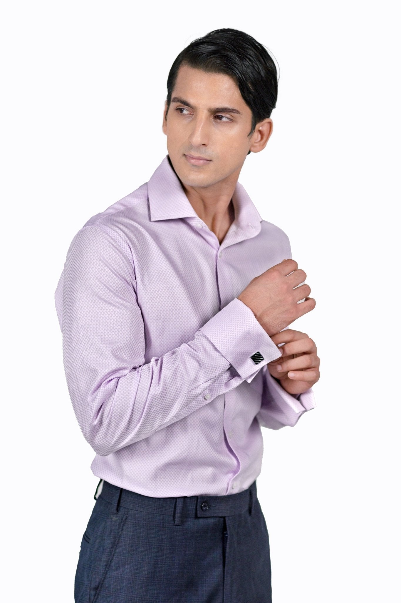 Lavender Checker Dobby French Cuff Shirt 2 Ply