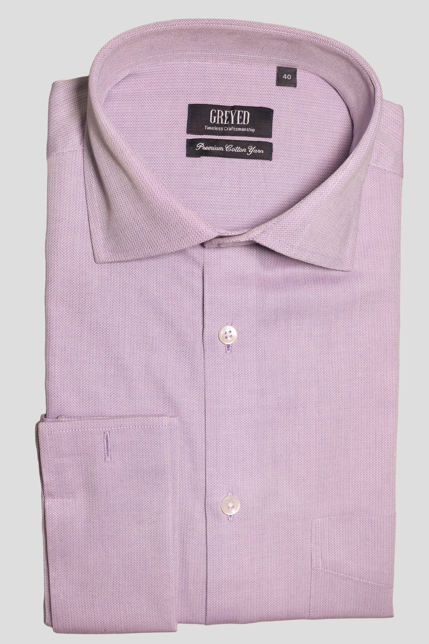 Elevate your boardroom presence with Greyed’s Lavender Herringbone Shirt, a sophisticated take on classic formal wear. Woven from superfine long-staple 100% cotton, the subtle herringbone weave creates a refined texture and natural sheen, adding quiet depth to the elegant lavender tone.