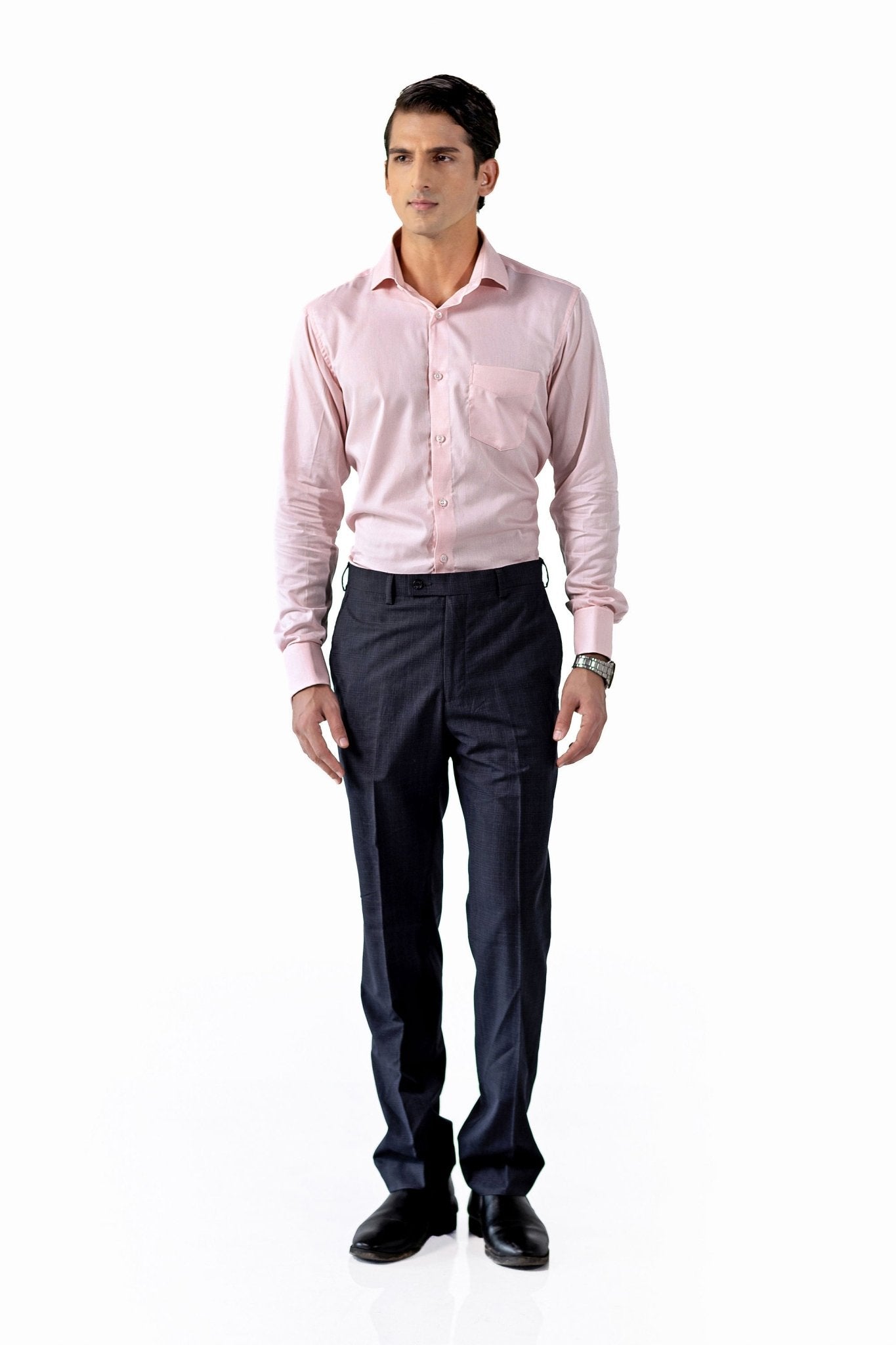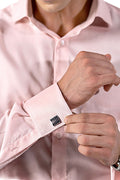 The soft pink tone balances confidence with approachability, making it as fitting for high-stakes boardroom meetings as it is for refined evening engagements. The French cuffs add an extra measure of formality and presence.
