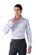 Ice Blue Herringbone French Cuff Shirt 2-Ply